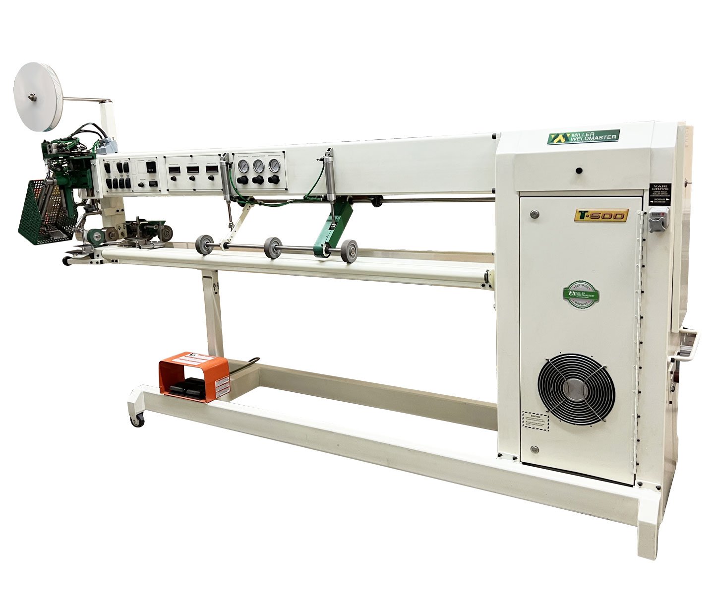 A soldadora de costura extrema T500 Miller Weldmaster é uma máquina de soldagem rotativa com cunha quente destinada a selar termicamente plásticos térmicos soldáveis.