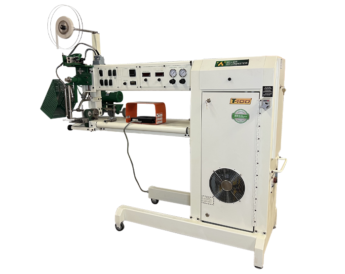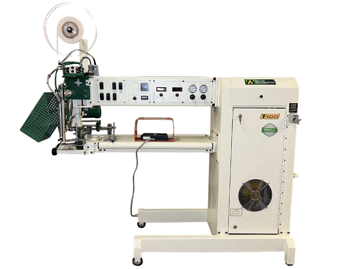 Construída para as exigências de produção mais duras, a Miller Weldmaster T100 oferece a versatilidade de uma máquina multifunções para os seus produtos de grandes dimensões. A T100 aceita tecidos de até 36" de largura para passar pela garganta sem dobrar